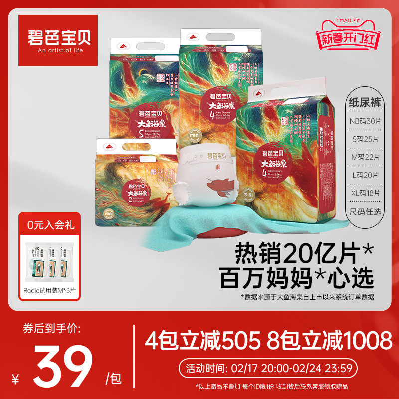 碧芭宝贝大鱼海棠纸尿裤mini装婴儿干爽透气尿不湿NB-S/M/L/XL码