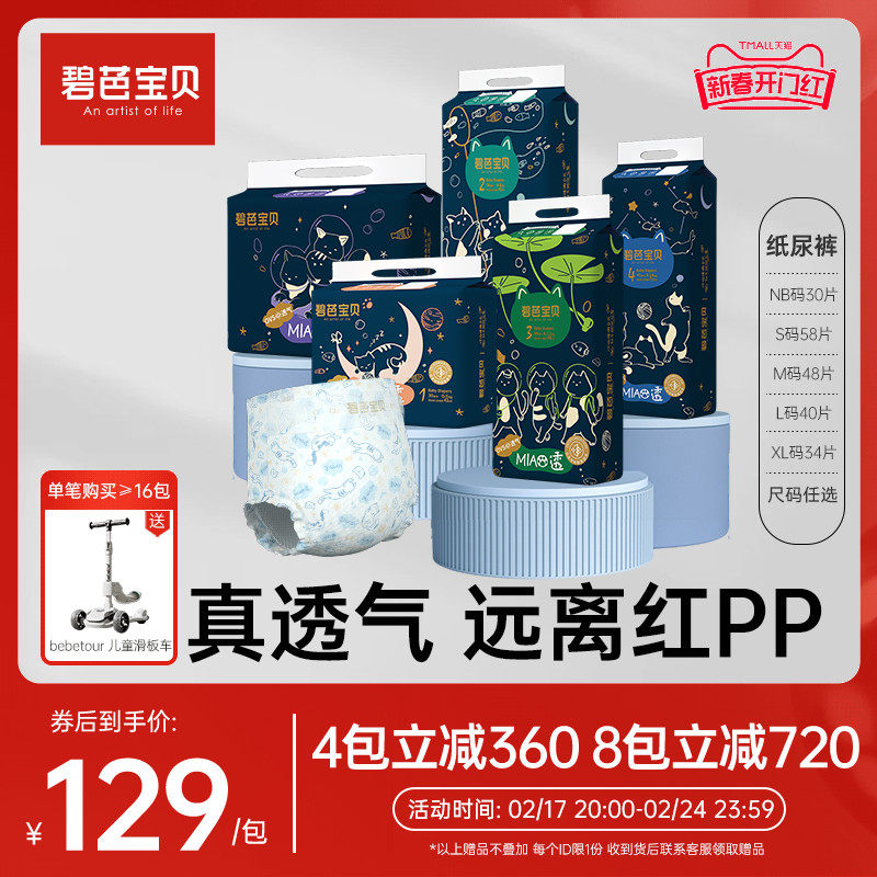 碧芭宝贝MIAO透婴儿纸尿裤抑菌护肤干爽透气尿不湿M-XL纸尿裤