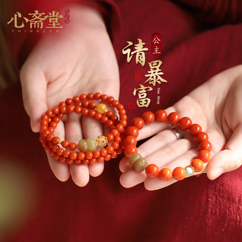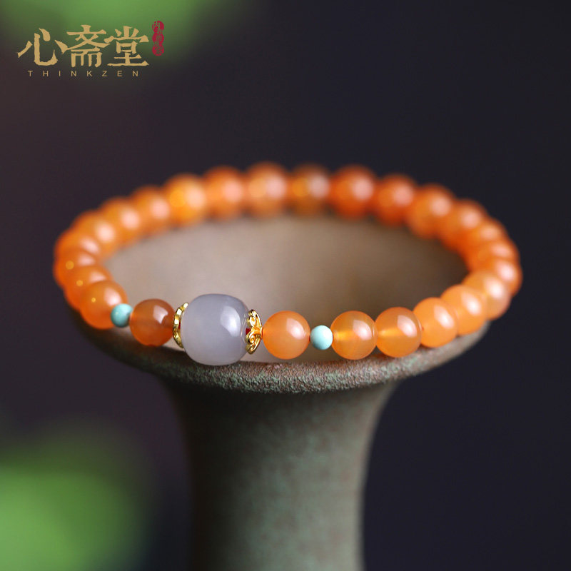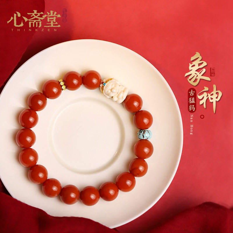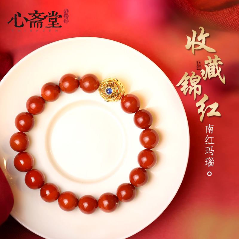 心斋堂【朝气】天然收藏玉化南红玛瑙手串本命年简约复古气质女款
