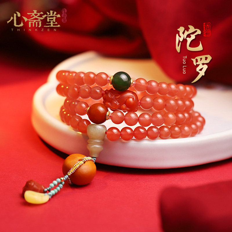 心斋堂【陀罗】天然凉山樱桃红南红玛瑙多圈手串佛珠修行念珠手链