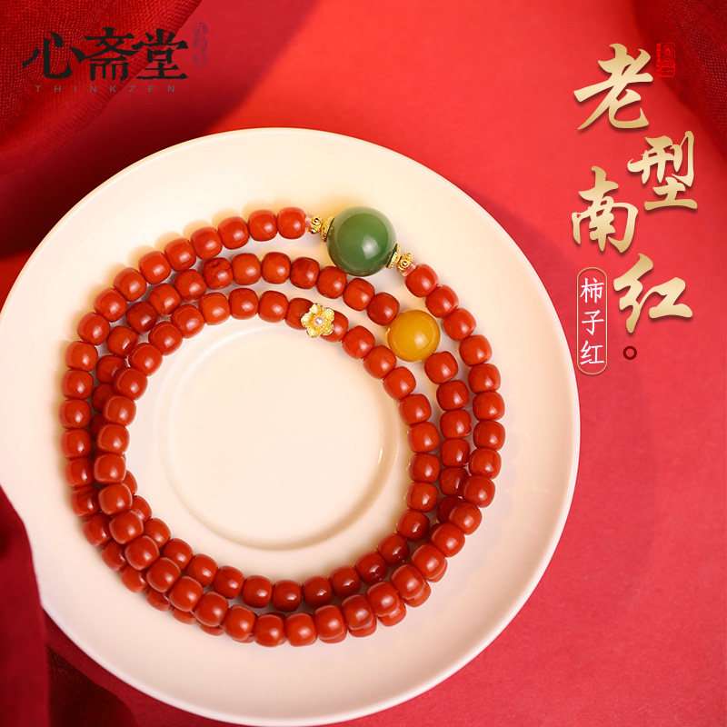心斋堂【喜之悦】天然凉山樱桃红南红玛瑙手串设计108颗佛珠手链