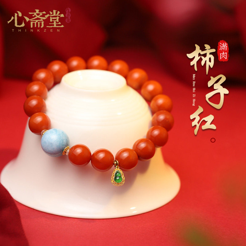 心斋堂【象神】新中式天然满肉柿子红南红玛瑙手串龙年本命年手链