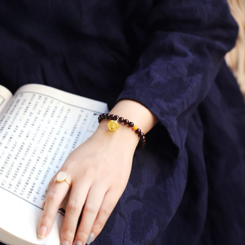 心斋堂【守静】天然带金星小叶紫檀手链女本命年原创设计佛珠手串