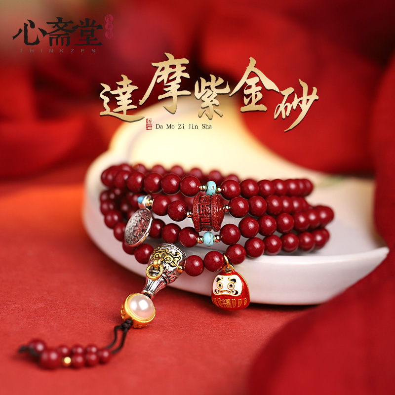 心斋堂【净心】朱砂旗舰店108颗佛珠手链男女手串项链佛珠本命年