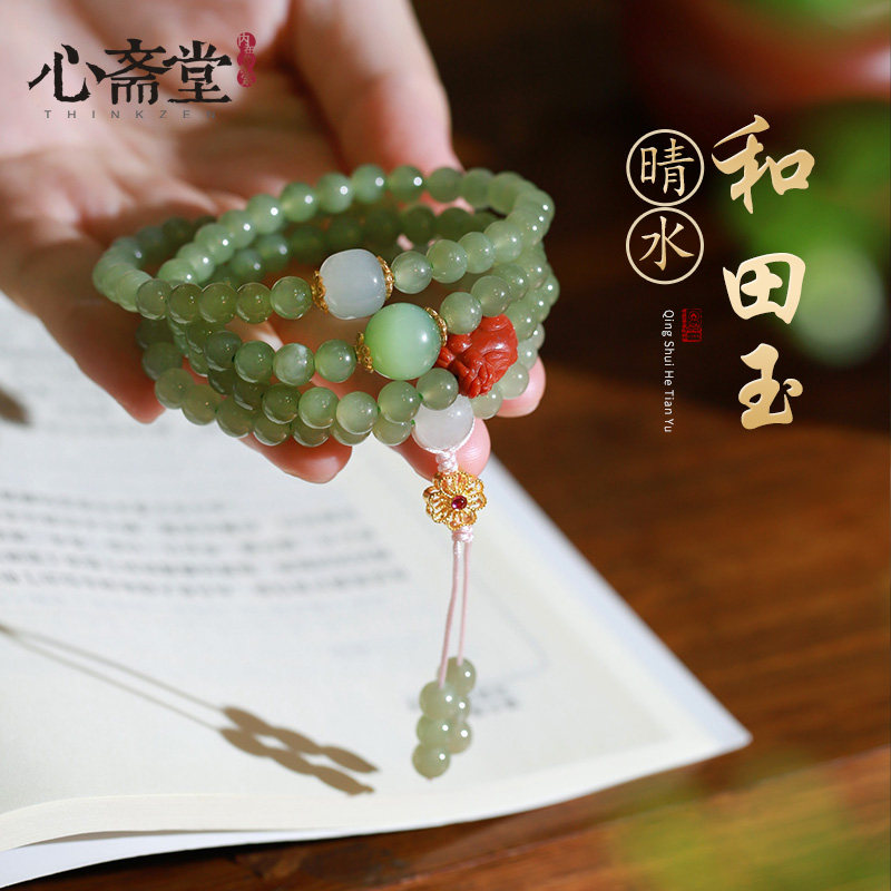 心斋堂【一念】天然高冰晴水和田玉手串女本命年108颗佛珠玉手链