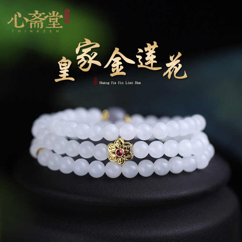 心斋堂【藕粉】天然藕粉和田玉手链女玉石高级感18K黄金观音手串