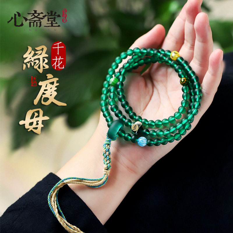 心斋堂【吉祥绿度母】手工绿琉璃佛珠手串108颗修行念珠女士手链