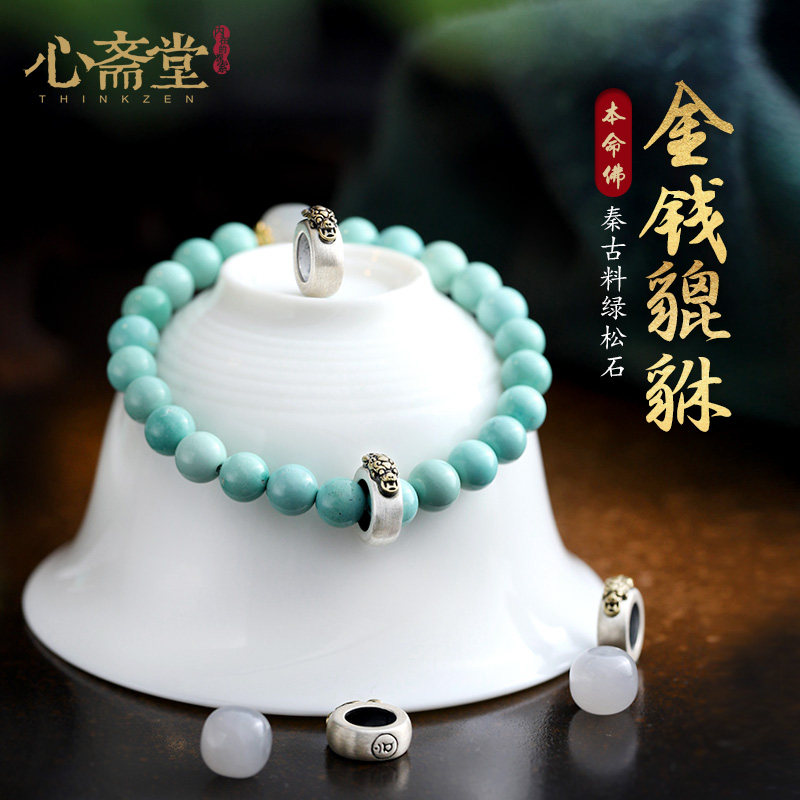心斋堂【叹歌】湖北原矿高瓷绿松石手串女999足金貔貅民族风手链