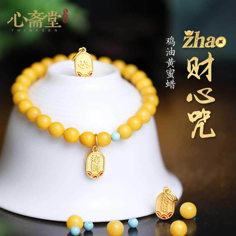 心斋堂【净思】天然琥珀蜜蜡鸡油黄手串12生肖本命年老蜜手链女款