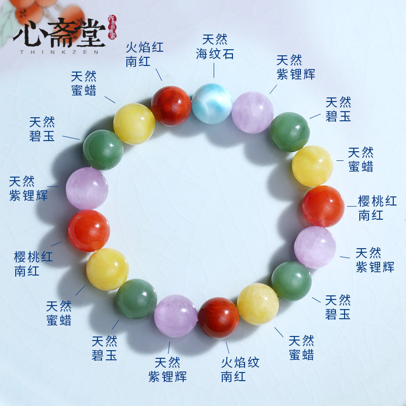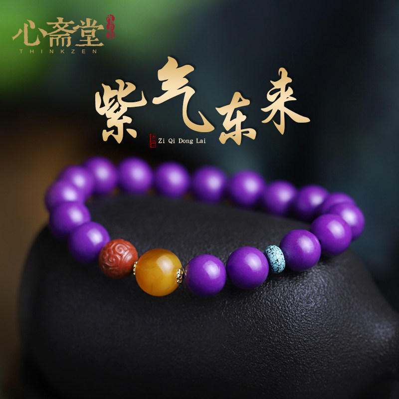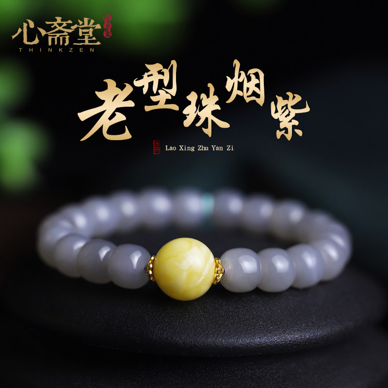 心斋堂原矿紫云母石手链女佛珠民族风琥珀老蜜蜡原创设计饰品礼品