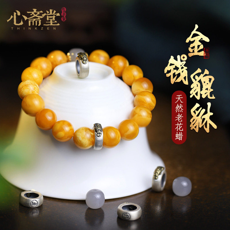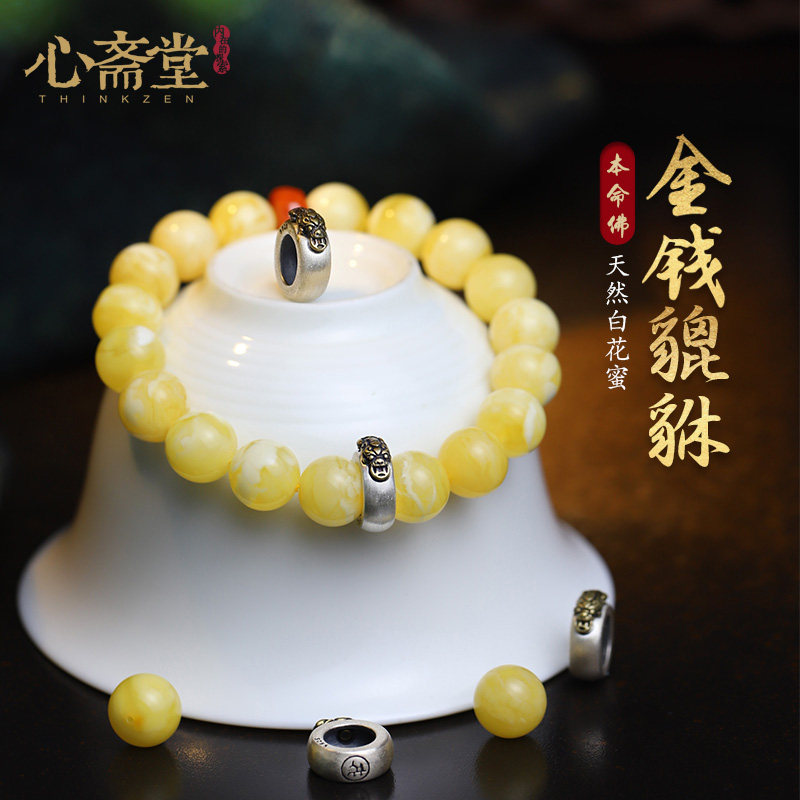 心斋堂【美景】收藏俄料白花蜜蜜蜡手串女古猛犸独角兽复古风手链