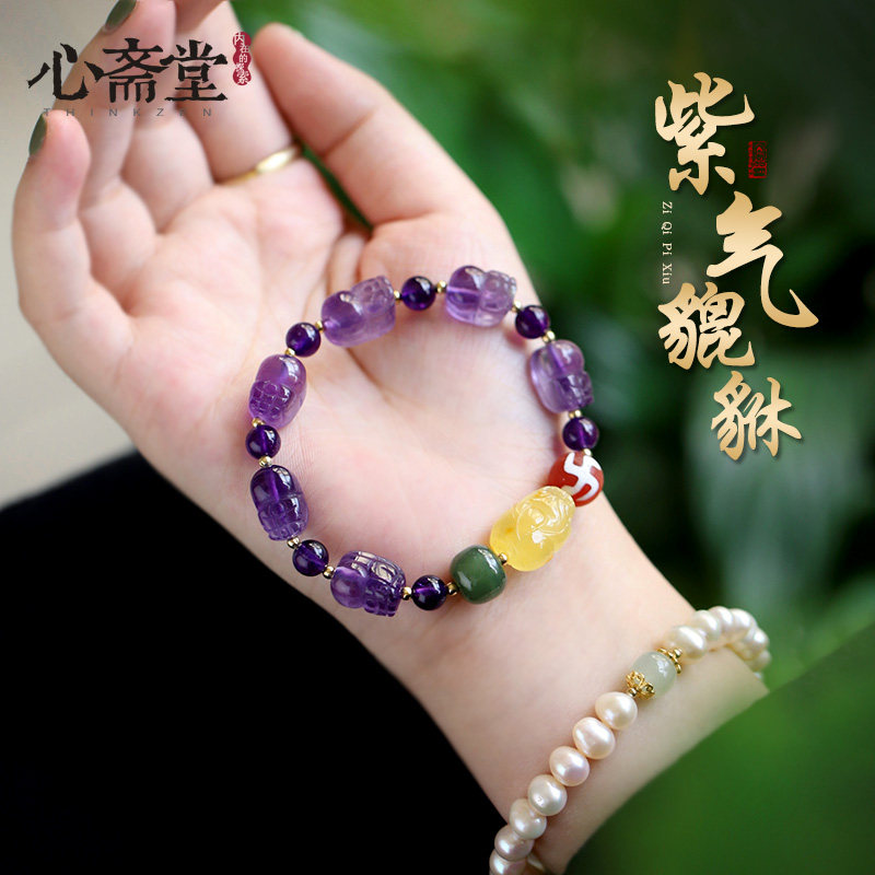 心斋堂【千诺】巴西紫水晶貔貅手链女国潮民族风蜜蜡手串礼物手环