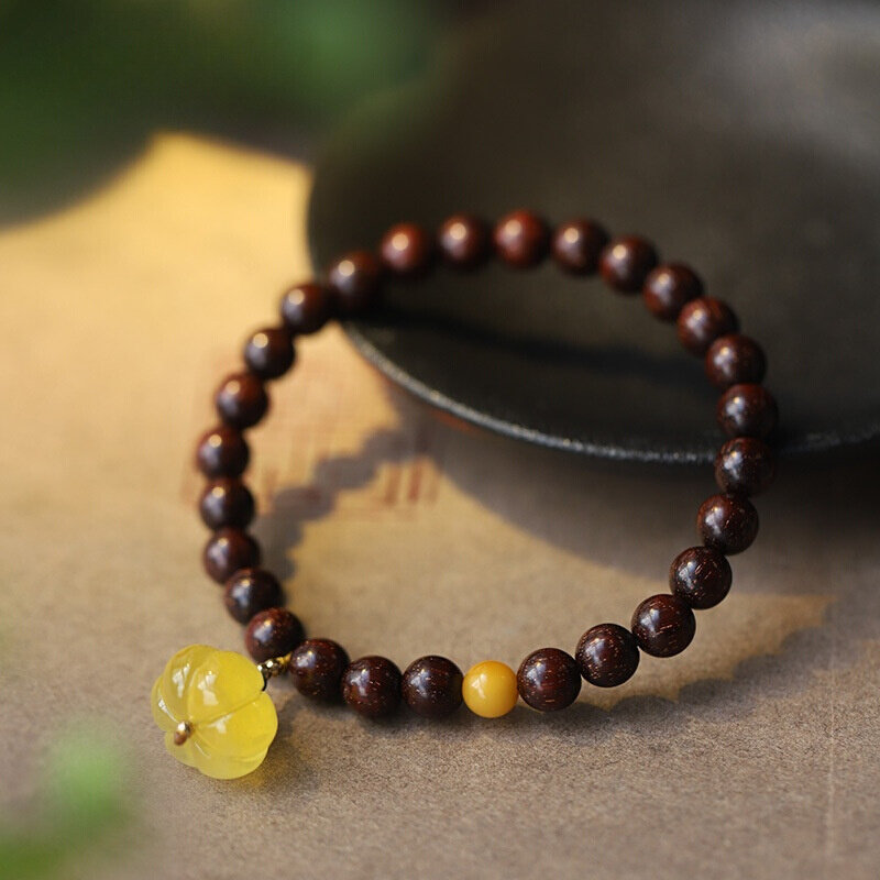 心斋堂【朱玄】天然朱砂原矿晶体紫金砂手串原创设计蜜蜡南瓜手链