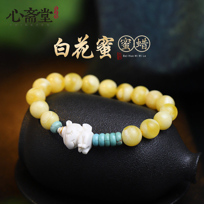心斋堂【寻道】收藏妖纹白花蜜蜜蜡手串女保真猛犸绿度母饰品手链