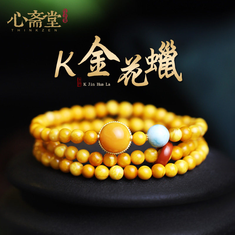 心斋堂【花灵】天然蜜蜡手串女收藏老花蜡花蜜18K金手链小众设计