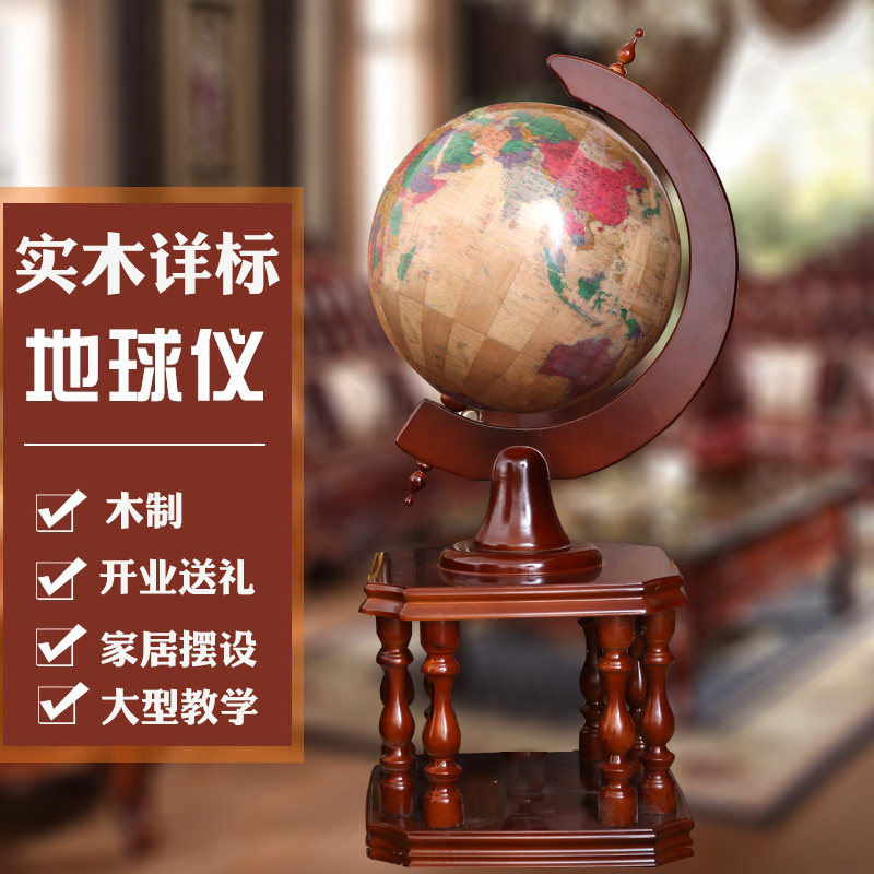 销品志诚实木地球仪大号木质工艺品办公桌室书房摆件落地商务开业
