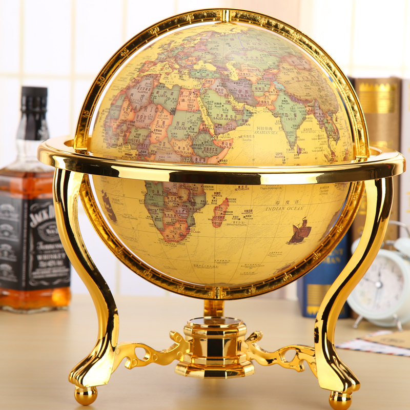 欧式黄宝石地球仪32cm摆件高清大号办公室书房办公桌客厅玄关装饰公司乔迁开业礼品家居摆设工艺品家居装饰品