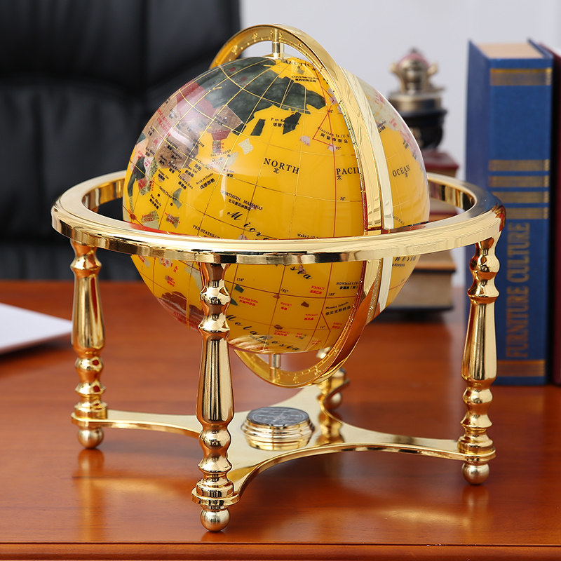 现代轻奢高档地球仪摆件酒柜办公室书房桌面玄关客厅家居软装饰品居家摆设 影视道具