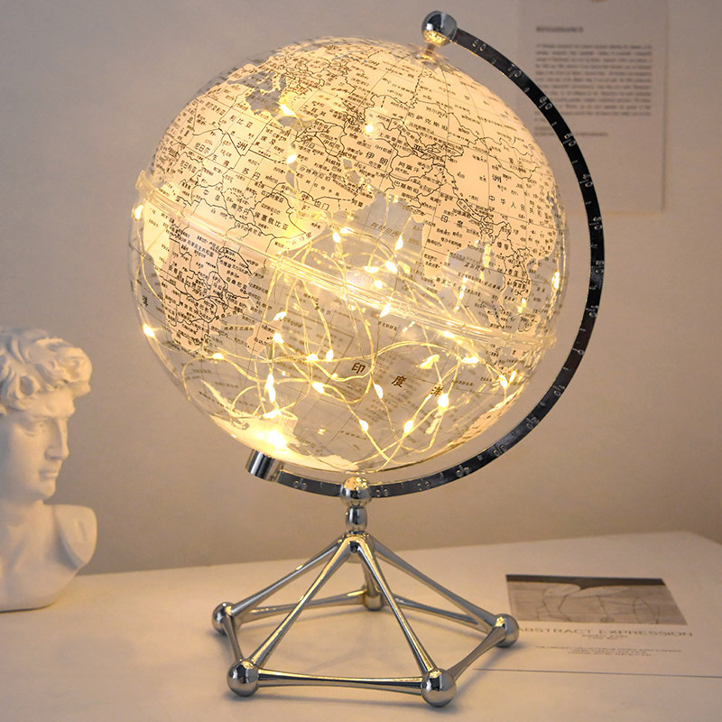 透明地球仪轻奢高档家居摆件客厅电视柜书房办公室桌发光装饰品