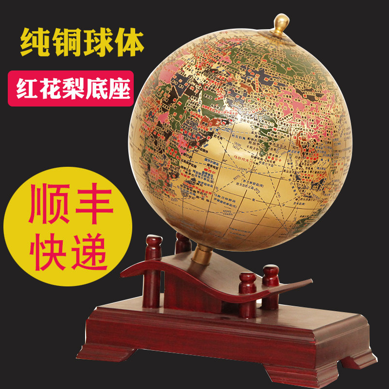 铜地球仪大型大号办公室桌摆件图书馆客厅装饰品乔迁公司工厂开业礼品工艺品纯铜地球仪黄花梨底座台式摆件
