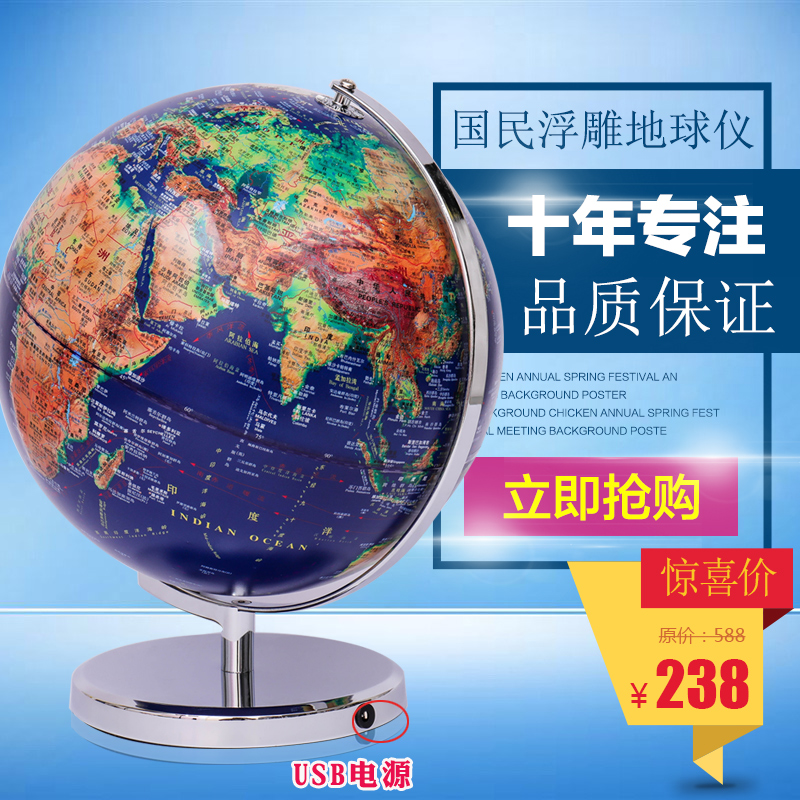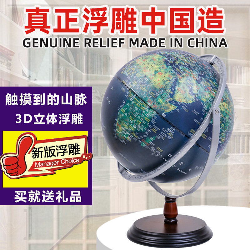 地球仪32cm学生用高清仿古立体浮雕台灯大号欧式办公室装饰摆件
