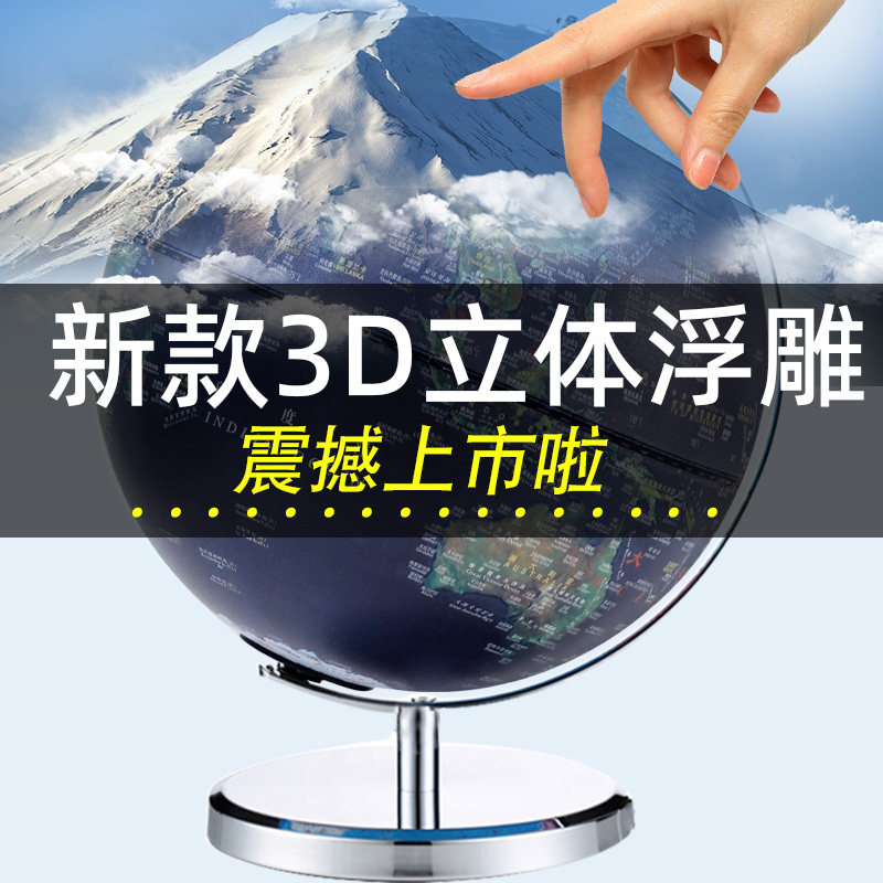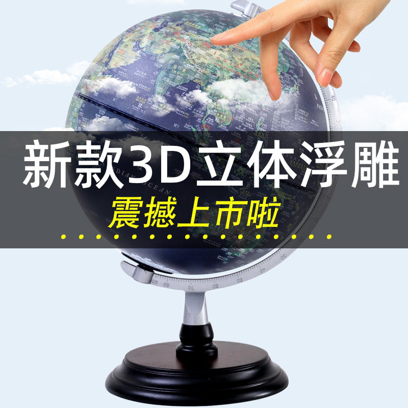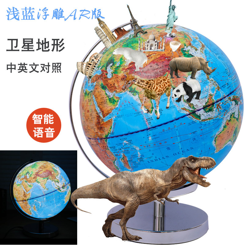 志诚ar互动3d立体浮雕地球仪地形台灯儿童夜光发光初中学生用地球仪大号高清金属办公室家居摆设20/25/32cm