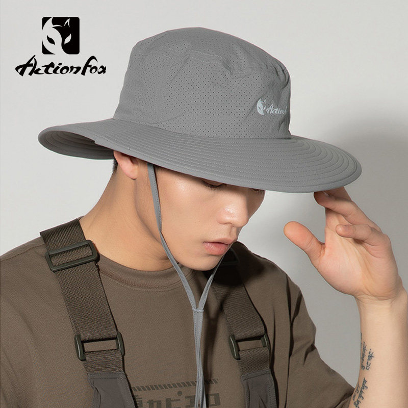 快乐狐狸户外登山帽男夏季徒步护颈渔夫帽大檐遮阳帽速干防晒帽子