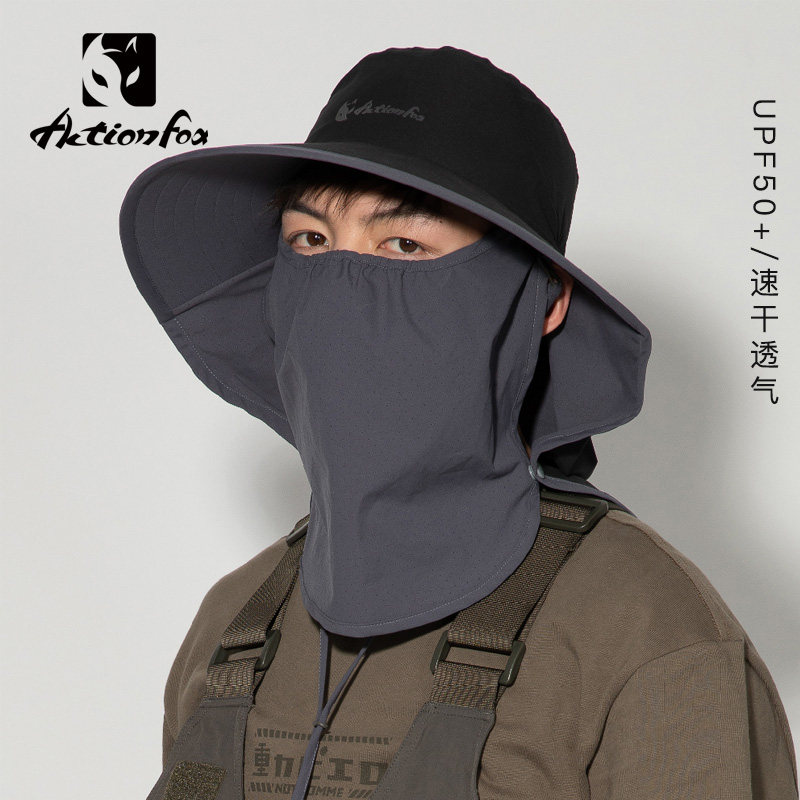 快乐狐狸户外遮阳帽男夏季全脸防护帽速干透气防紫外线防晒帽子薄