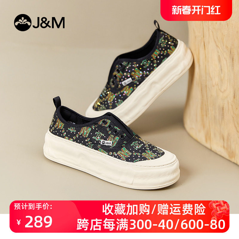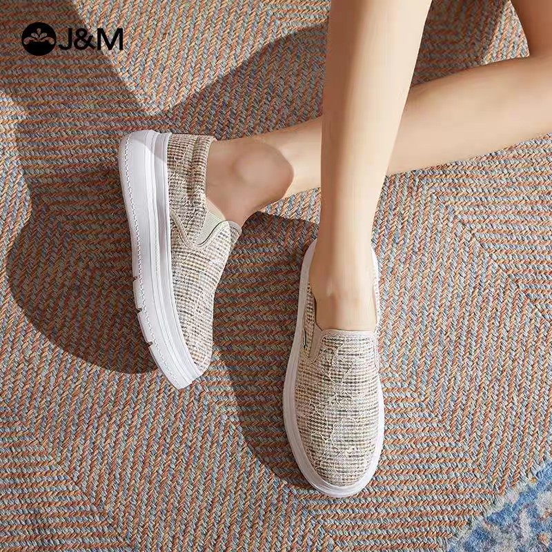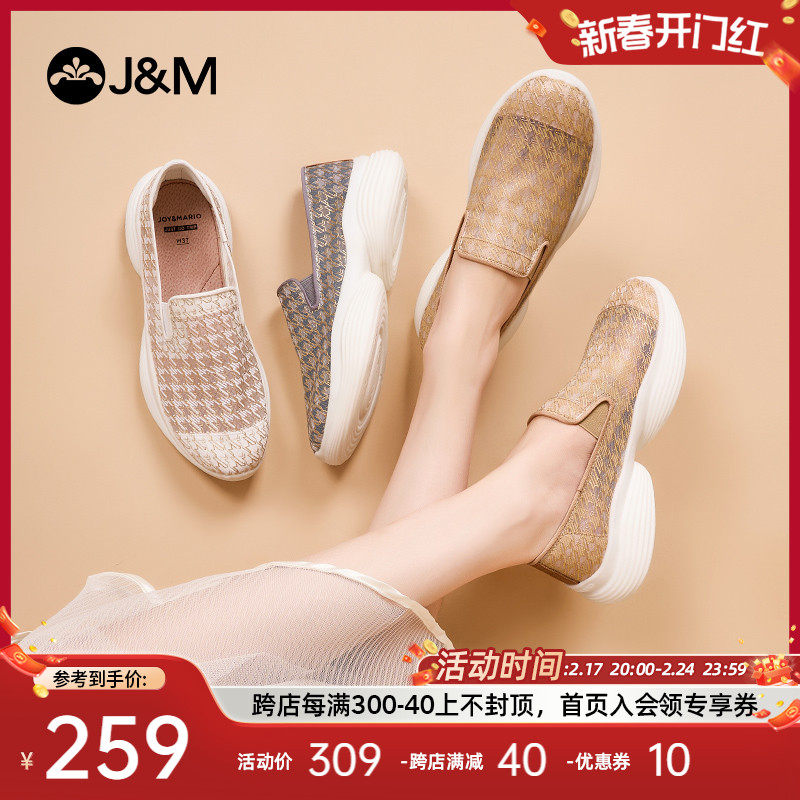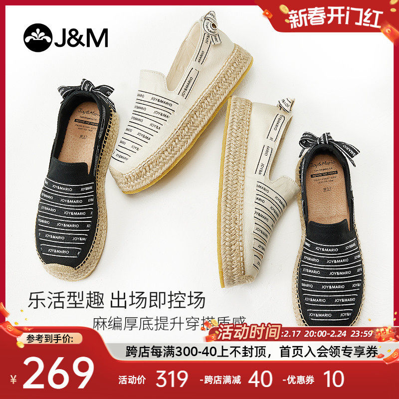 jm快乐玛丽22春季款百搭乐福鞋厚底透气布鞋懒人一脚蹬女鞋65122W