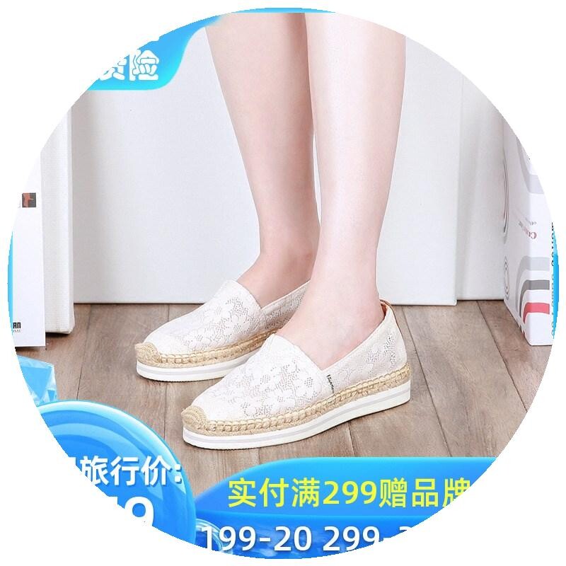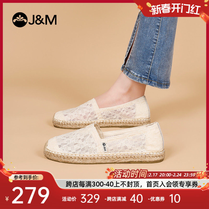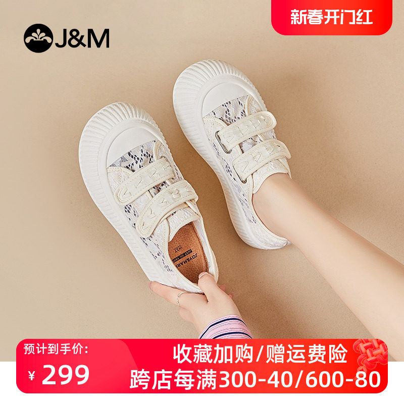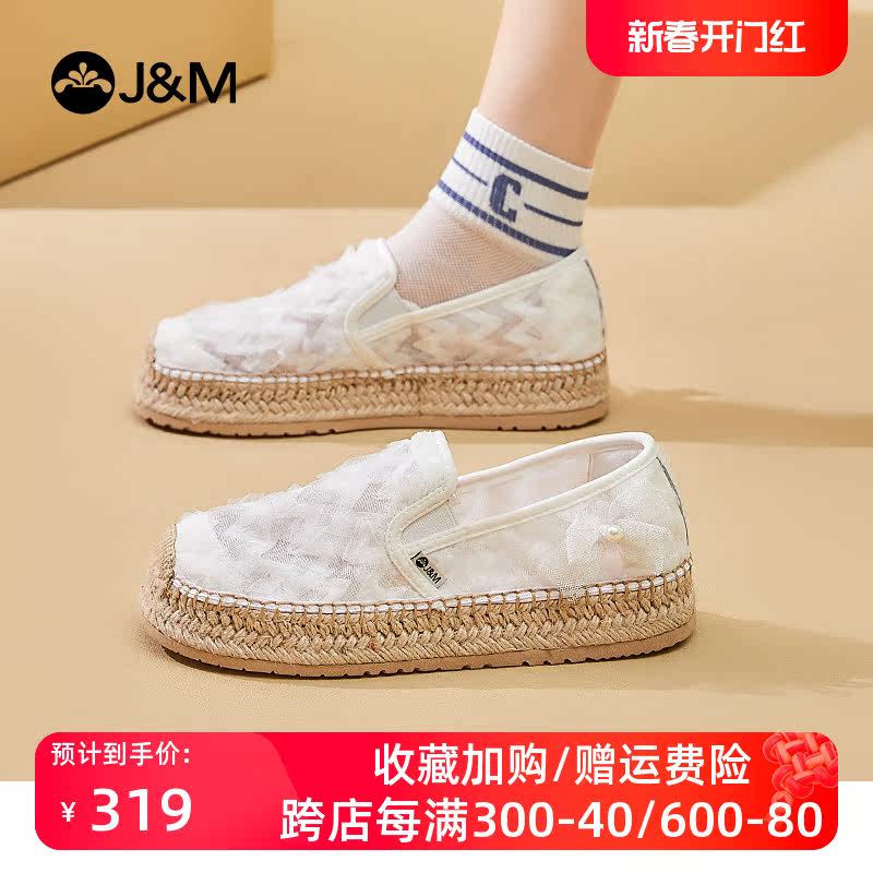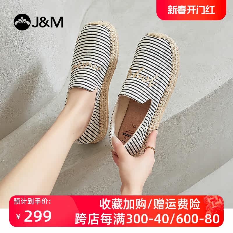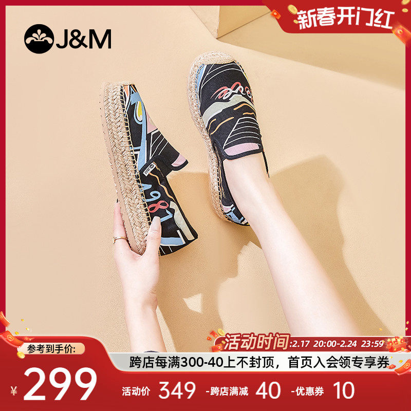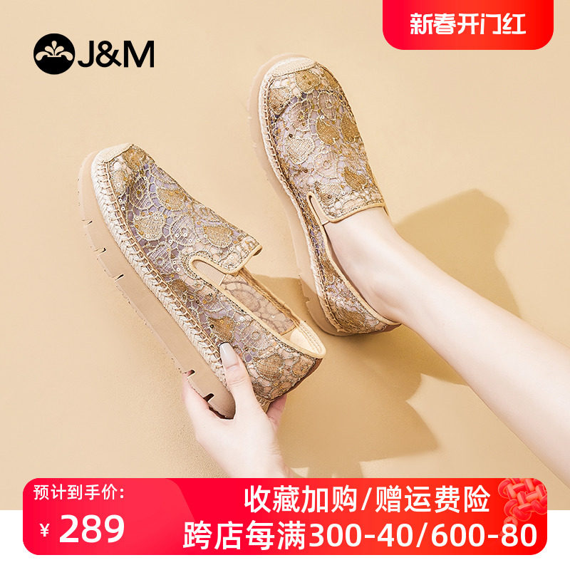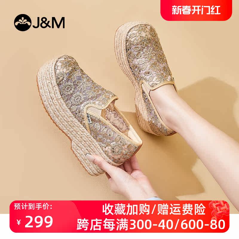 j&m/女鞋夏季新款蕾丝厚底舒适透气松糕底布鞋休闲鞋238W