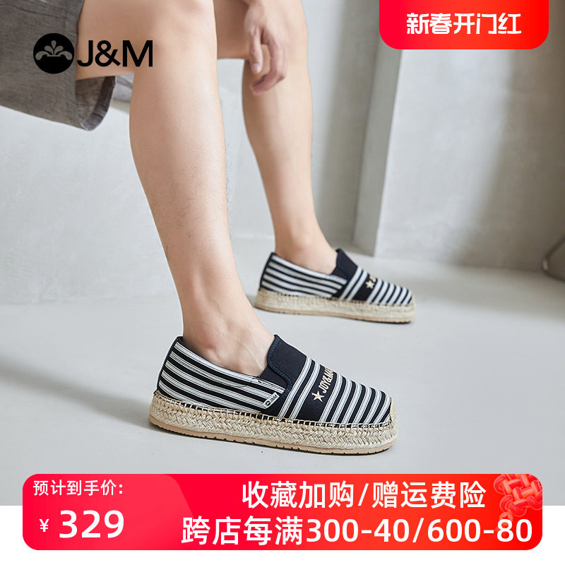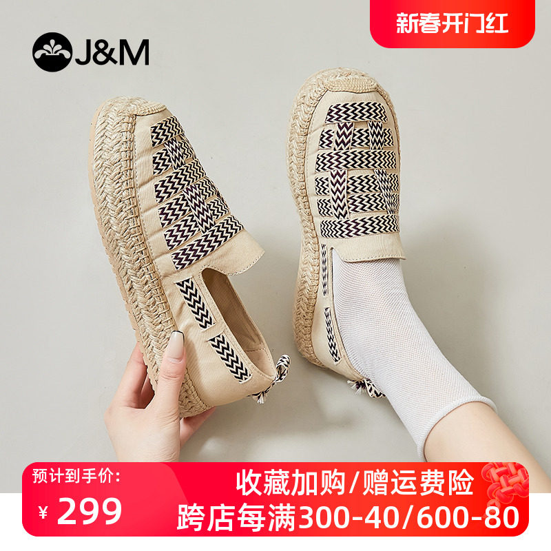 jm快乐玛丽布鞋女2023夏季新款麻底编织休闲一脚蹬懒人渔夫鞋女