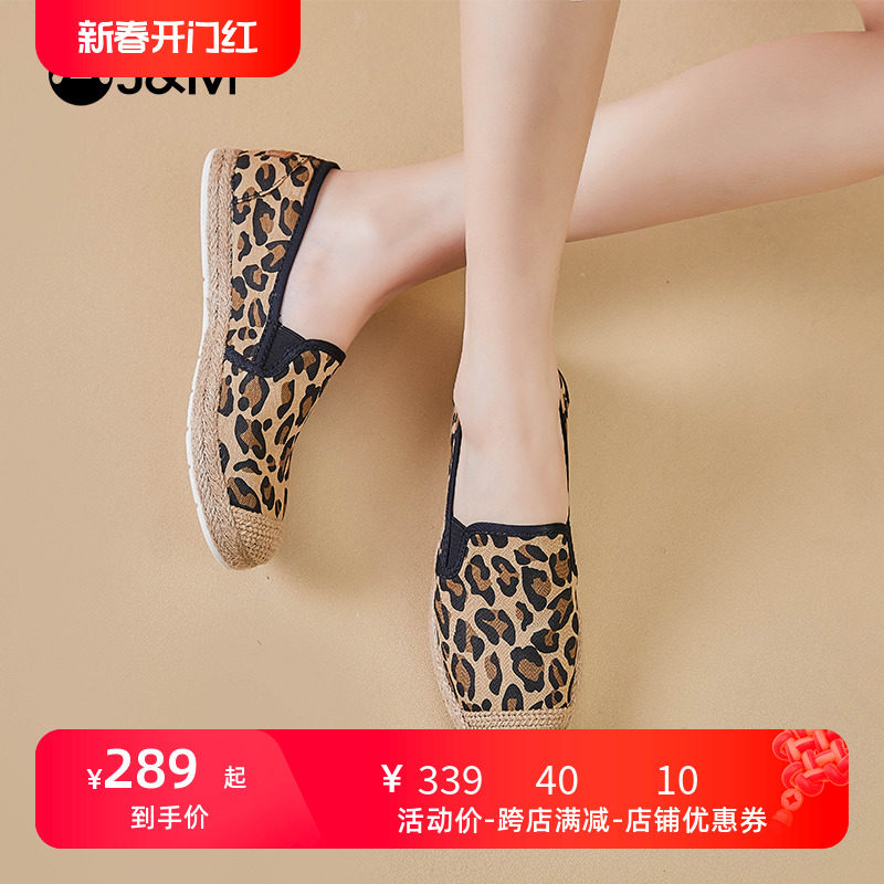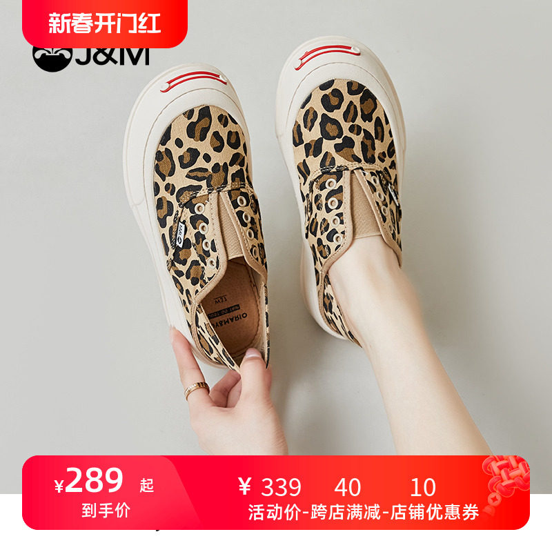 快乐玛丽鞋子原创小众豹纹女鞋2023春秋新款懒人鞋女一脚蹬布鞋