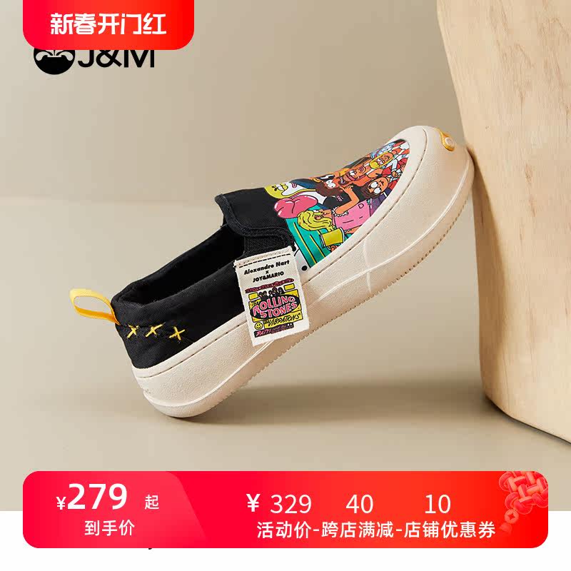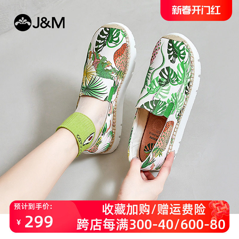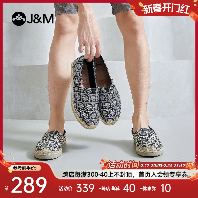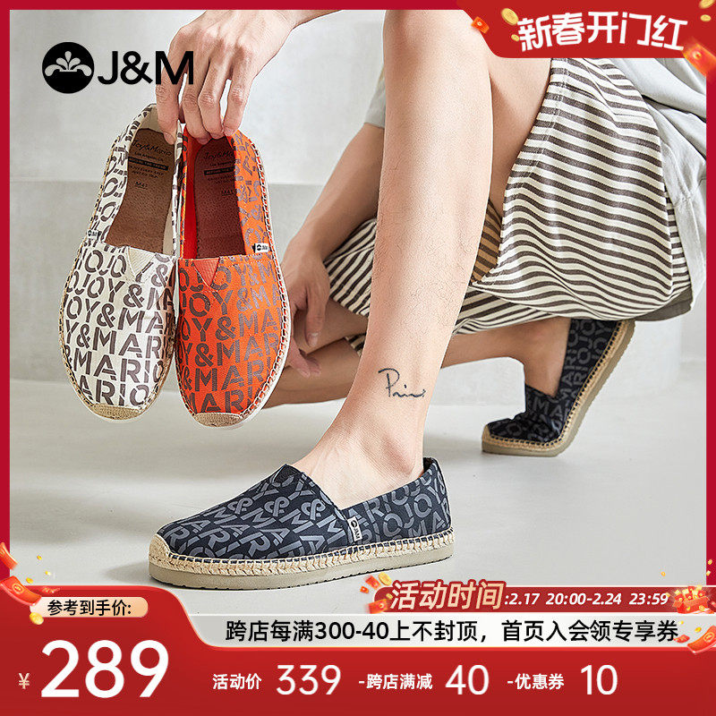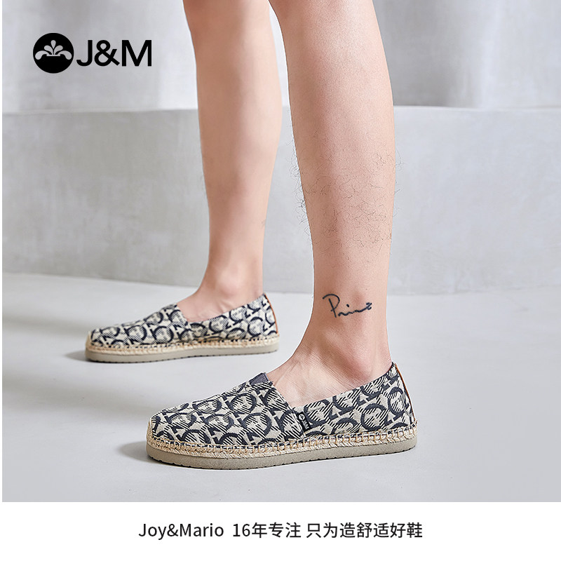 JM快乐玛丽男鞋22秋季新款帆布鞋休闲草编布鞋涂鸦渔夫男鞋72281M