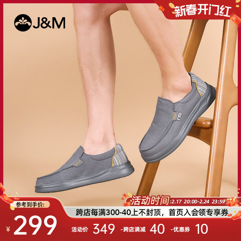 jm快乐玛丽男鞋2022春夏新帆布鞋一脚蹬平底懒人休闲布鞋男83298m