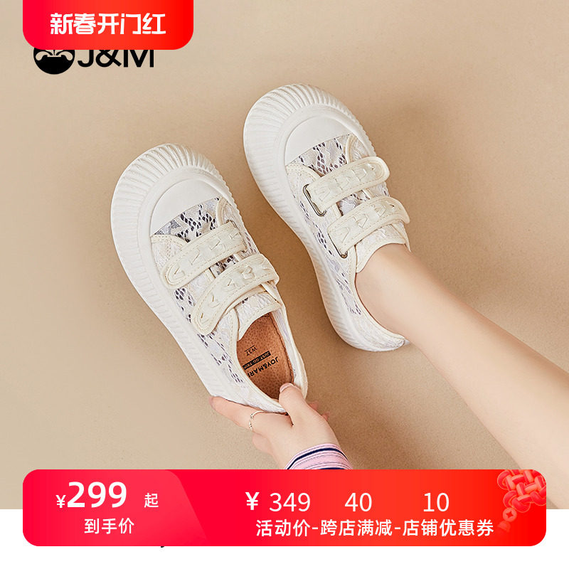 jm快乐玛丽女鞋蕾丝镂空布鞋平底懒人小白鞋61636W 61880W 61925W