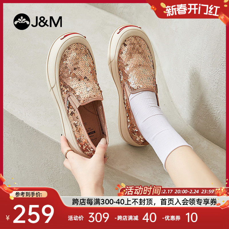 jm快乐玛丽布鞋女2024春季新款浅口厚底休闲百搭一脚蹬乐福鞋女鞋