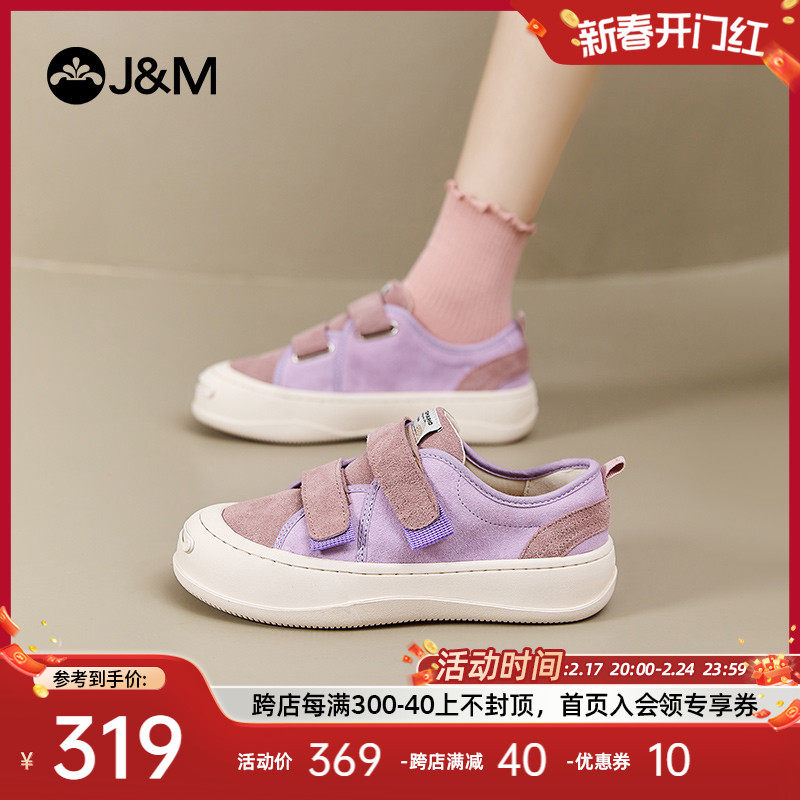 jm快乐玛丽春季新款舒适百搭厚底懒人一脚蹬纯色女休闲布鞋86082