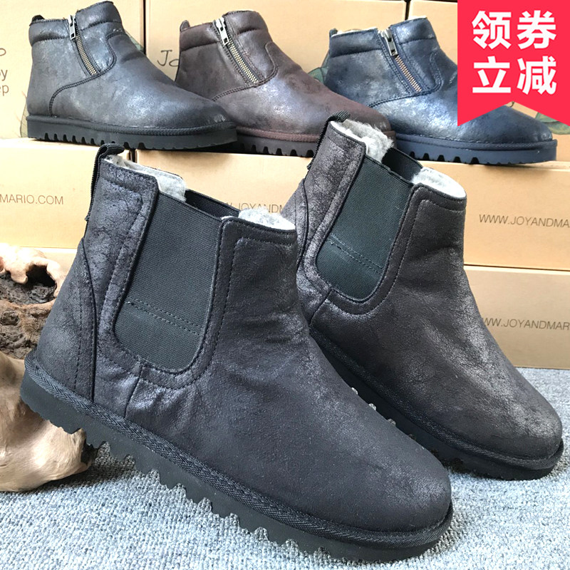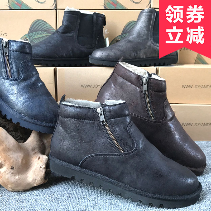 jm快乐玛丽男鞋冬季高帮短靴皮毛一体拉链男棉皮鞋58028M 58083M