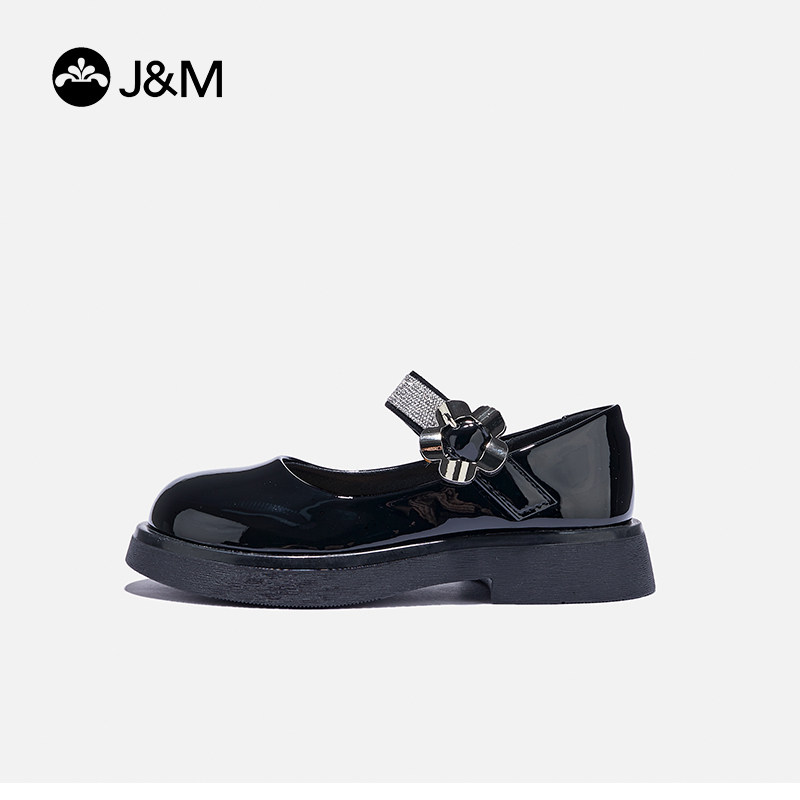 jm快乐玛丽儿童鞋2022春夏新款女童蝴蝶结简约方口公主皮鞋63213C