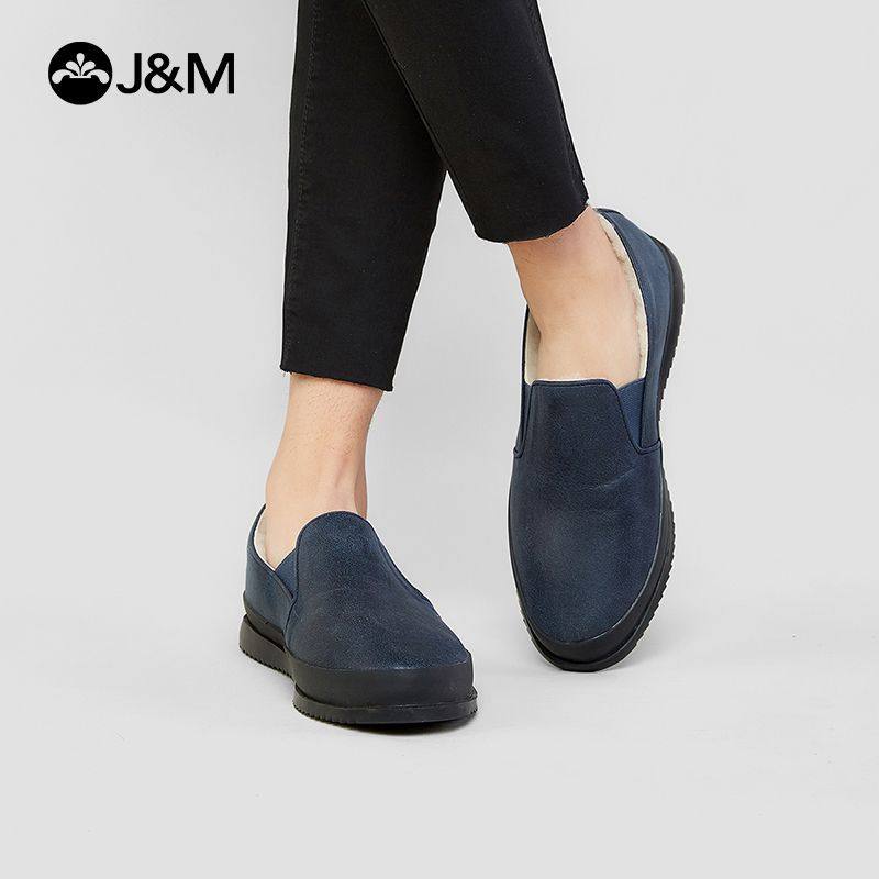 jm快乐玛丽2022冬款男鞋皮鞋加绒保暖羊毛休闲鞋男雪地靴平底鞋a