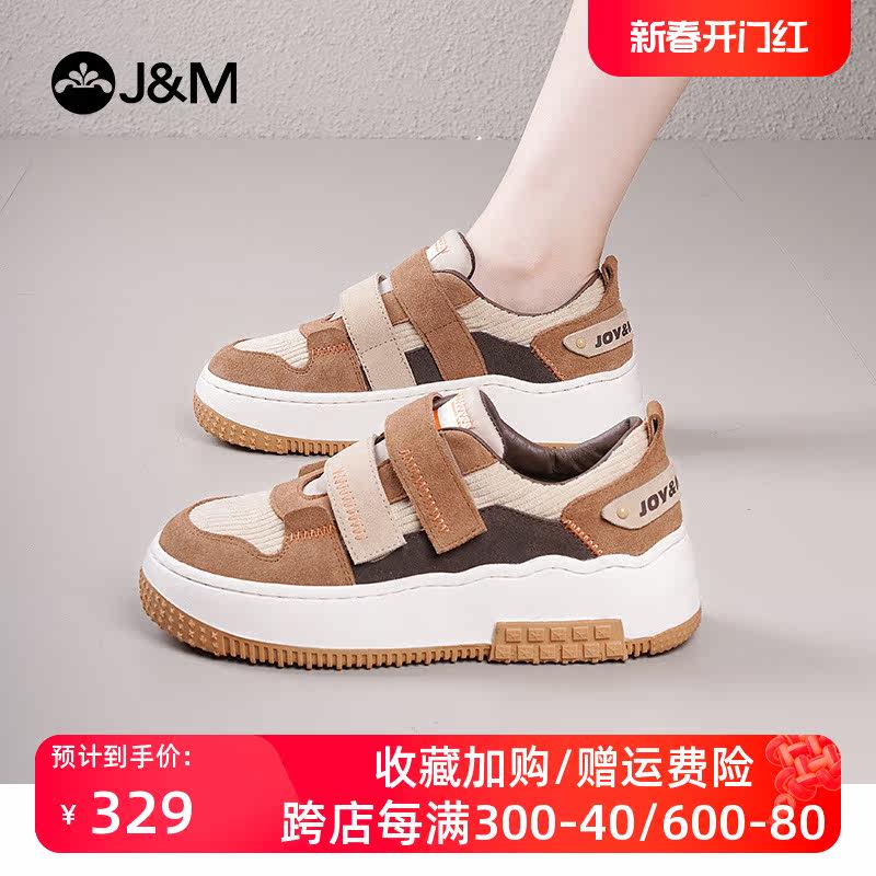 jm快乐玛丽2024春季新款潮流厚底魔术贴运动增高休闲板鞋小白鞋女