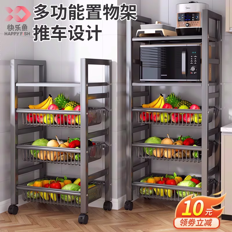 快乐鱼厨房置物架落地多层多功能收纳微波炉蔬菜架子家用储物架子