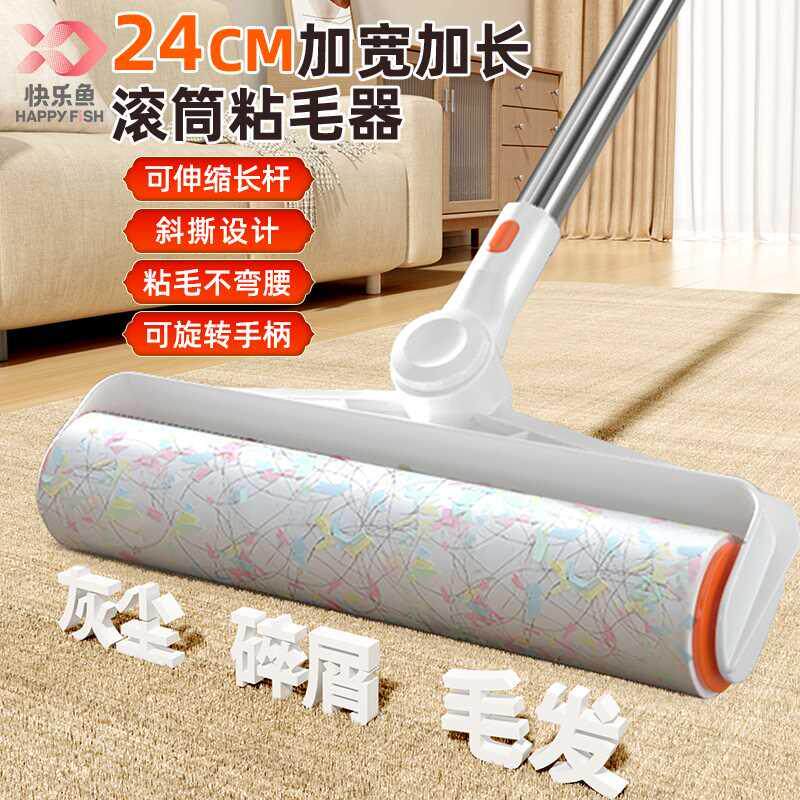 快乐鱼粘毛器滚筒长杆床上沾头发神器滚刷地板黏猫毛除尘可撕式纸