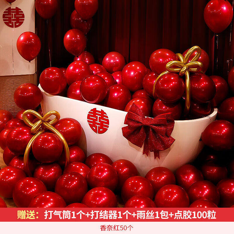 思泽(SIZE)结婚加厚乳胶气球装饰场景布置网红色卧室汽球婚房套