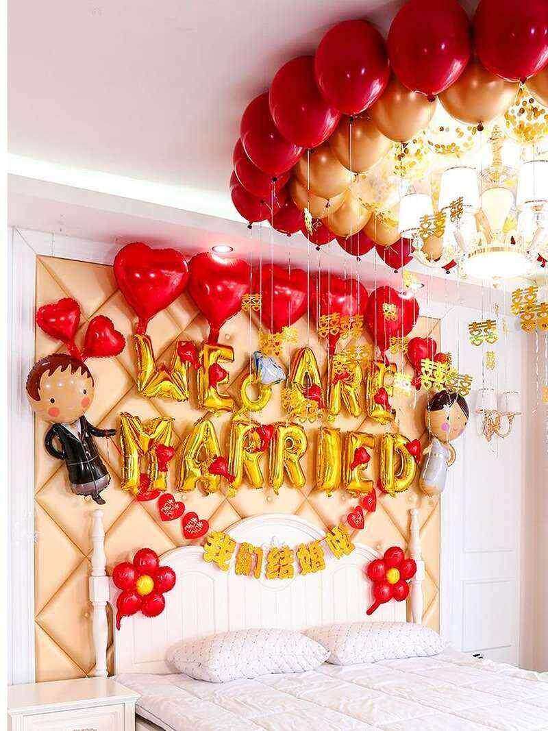 思泽(SIZE)婚礼婚房装饰气球房间布置求婚结婚用品宝石红女方闺