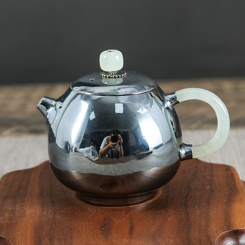 纯银泡茶壶999手工篆刻玉柄思泽龙蛋艺品茗自用中式送礼