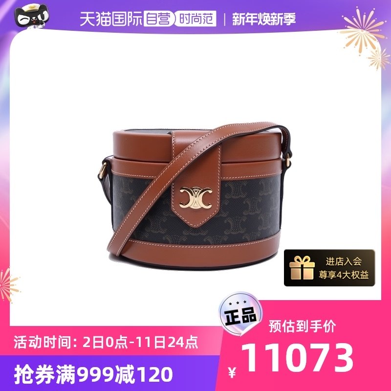 【自营】中古95新CELINE思琳女包斜挎包TAMBOUR TRIOMPHE圆桶老花
