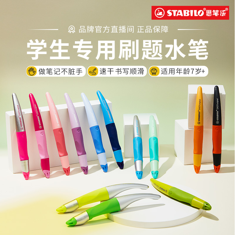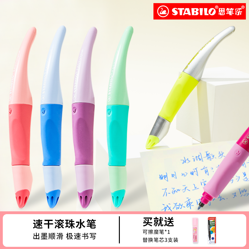 stabilo思笔乐旗舰店弯弯海豚水笔儿童正姿小学生专用书写练字大容量速干圆珠专用笔签字文具中性可擦笔芯