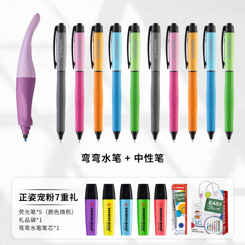 【U先】stabilo思笔乐旗舰店弯弯海豚水笔儿童正姿小学生专用书写练字大容量速干圆珠专用笔签字文具中性笔芯