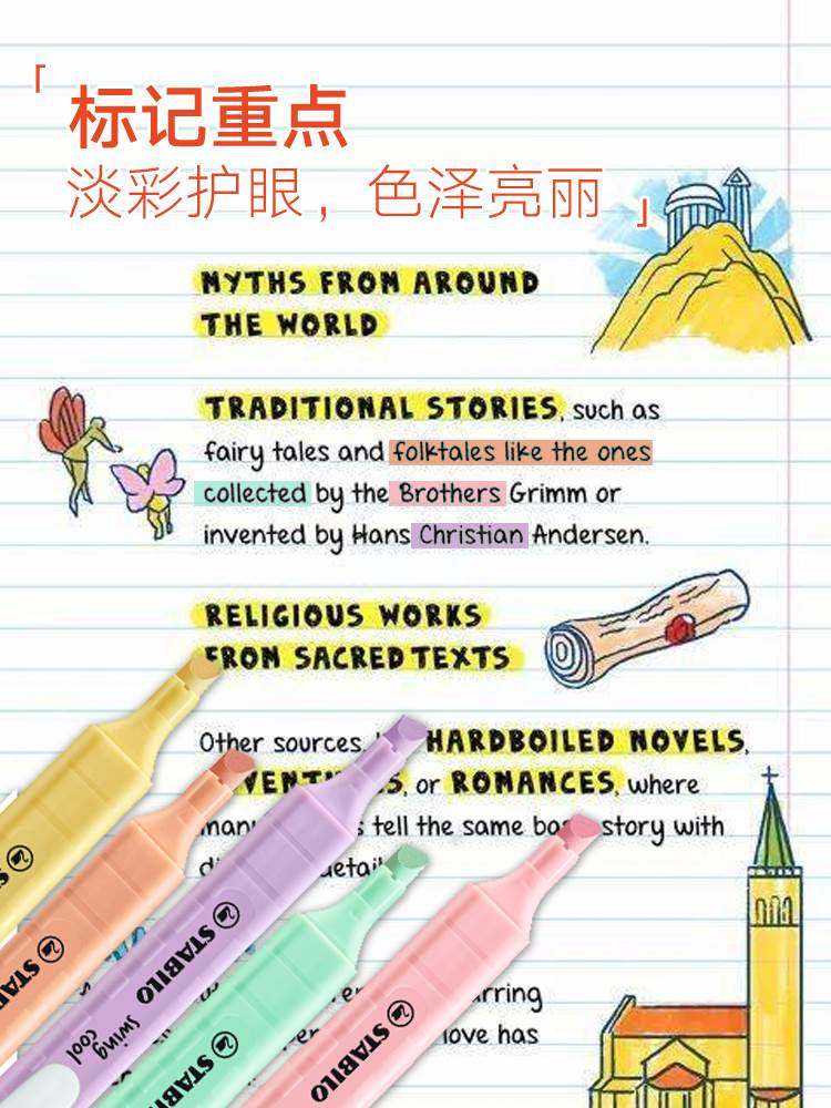 德国STABILO思笔乐275荧光笔小学生用马卡龙色记号笔彩色纤维标记